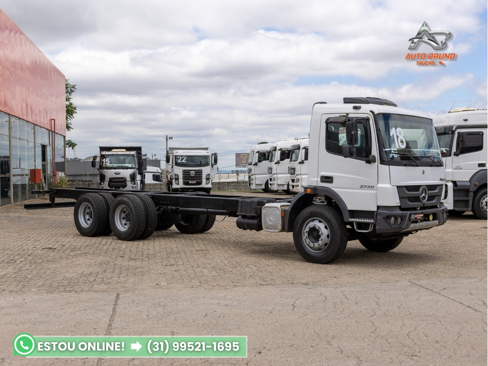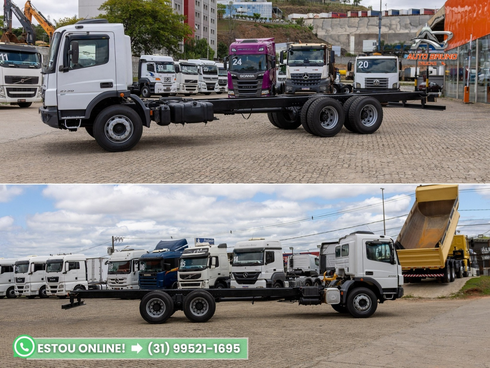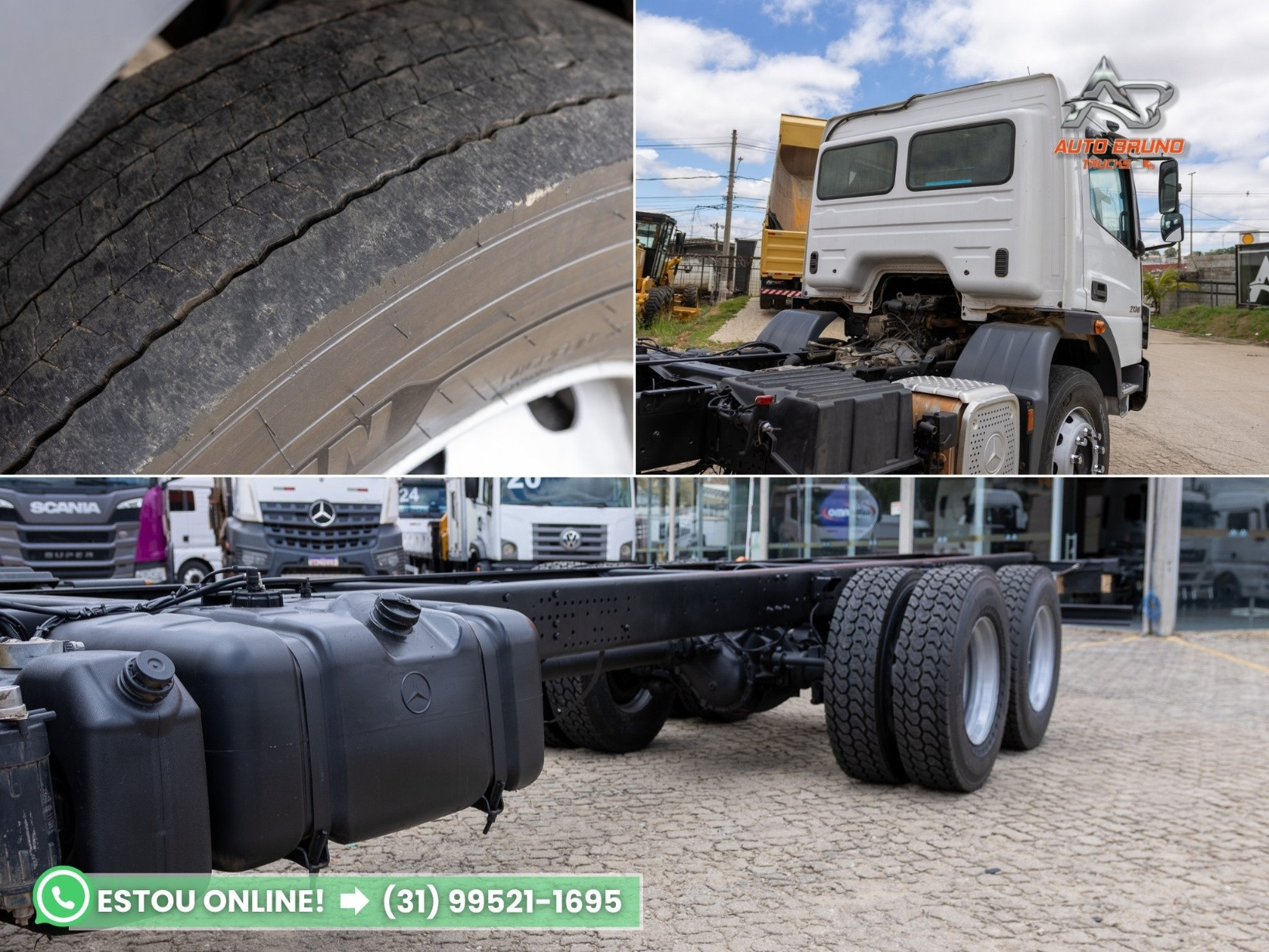 Vantagens: Caminhão Mercedes-Benz Atego 2730 6x4 traçado, ano 2018, com apenas 132.000 km originais, motor original com revisões periódicas em dia. Equipado com pneus novos na tração, cabine com Interclima, bancos em couro, vidros elétricos e ar-condicionado. Suspensão de mola, diferencial bug leve (canelinha), ideal para operações severas como transporte de silo e serviços fora de estrada. . Chassi: Entre eixos de 5,20m e comprimento total do chassi de 8,70m. Estrutura totalmente alinhada, sem sinais de soldas ou avarias aparentes. . Pneus: Medida 275/80. Pneus dianteiros com 70% de borracha e conjuntos de tração com pneus borrachudos em estado de novo (100%), conforme fotos. . Cabine: Muito bem conservada, com bancos em couro, ar-condicionado, vidros elétricos e acabamentos internos em ótimo estado. Ideal para clientes exigentes. . Mecânica: Motor original, com apenas 132.000 km rodados, sem vazamentos e com manutenção em dia. Suspensão de mola, câmbio manual em perfeito funcionamento. Mecânica em excelente estado geral. . Câmbio: Manual, com engates suaves e funcionamento perfeito. . Diferencial: Bug leve (canelinha), sem vazamentos, em ótimo estado de funcionamento, pronto para rodar em terrenos acidentados e operações exigentes.