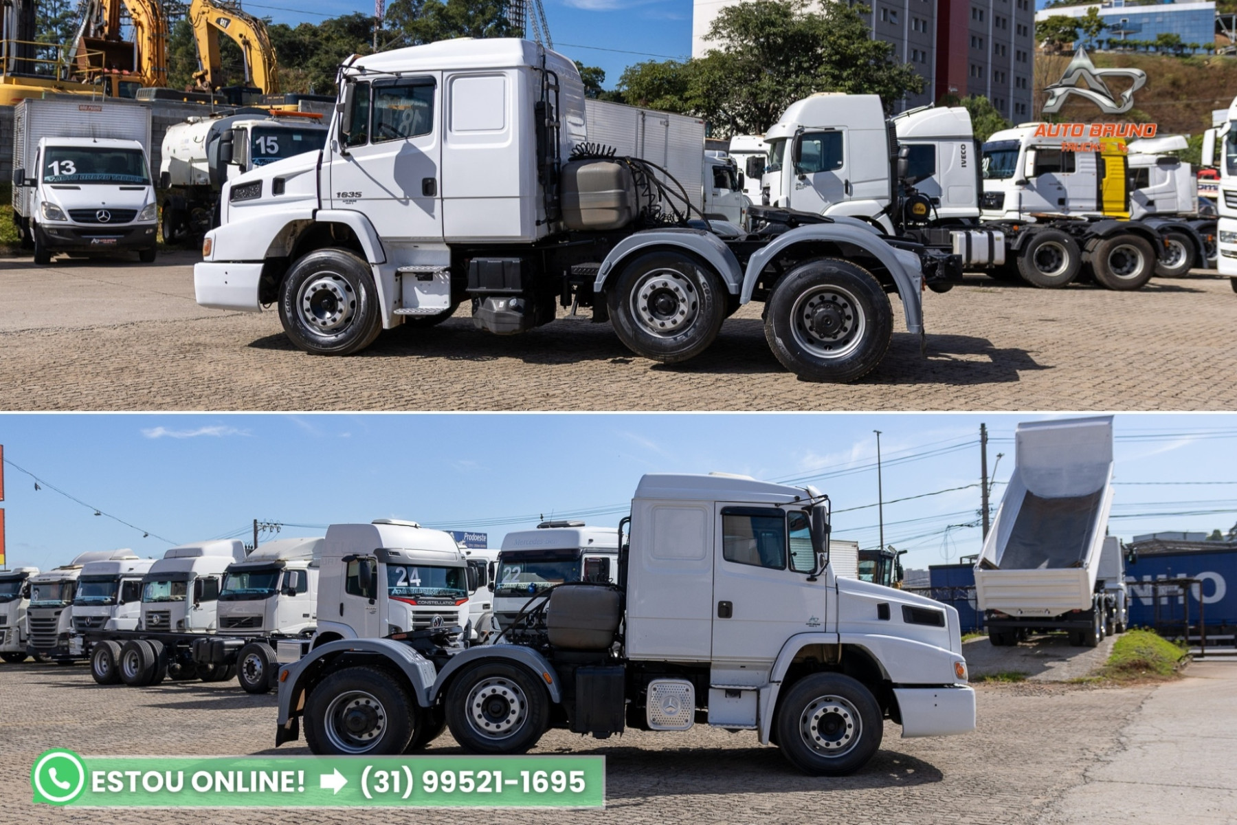 Vantagens: Cavalo mecânico 6x2 com segundo eixo direcional (bitoco), configuração que proporciona maior capacidade de carga e melhor distribuição de peso, favorecendo a durabilidade dos componentes e a segurança operacional. . Chassi: Cavalo com chassi alinhado sem soldas aparentes ou empenos, distancia entre primeiro eixo e direcional com 3,10m e entre eixos de 4,50 metros. Tanque de combustível sobre chassis. . Pneus: medida 275/80. Dianteiros com 80% de borracha, bitoco com 70%. Tração borrachudo com mais de meia vida em aproximadamente 80%. . Cabine: lacrada, original e preservada. Estado externo em bom nível de conservação. Interior íntegro, com bancos, painel e acabamentos em excelente estado e com pouquíssimos detalhes de uso. . Mecânica: motor original, sem vazamentos aparentes. Quilometragem atual: 435.000 km. Manutenções realizadas periodicamente, assegurando pleno funcionamento. . Trabalho anterior: Cargas rodoviárias em geral, incluindo minério. . Câmbio: funcionamento regular, sem falhas ou vazamentos. Sistema adequado para operações rodoviárias, proporcionando confiabilidade e desempenho. . Diferencial: com cubo redutor, sem vazamentos. Sistema íntegro, conferindo maior robustez e desempenho para operações que exigem força adicional no eixo tracionado.
