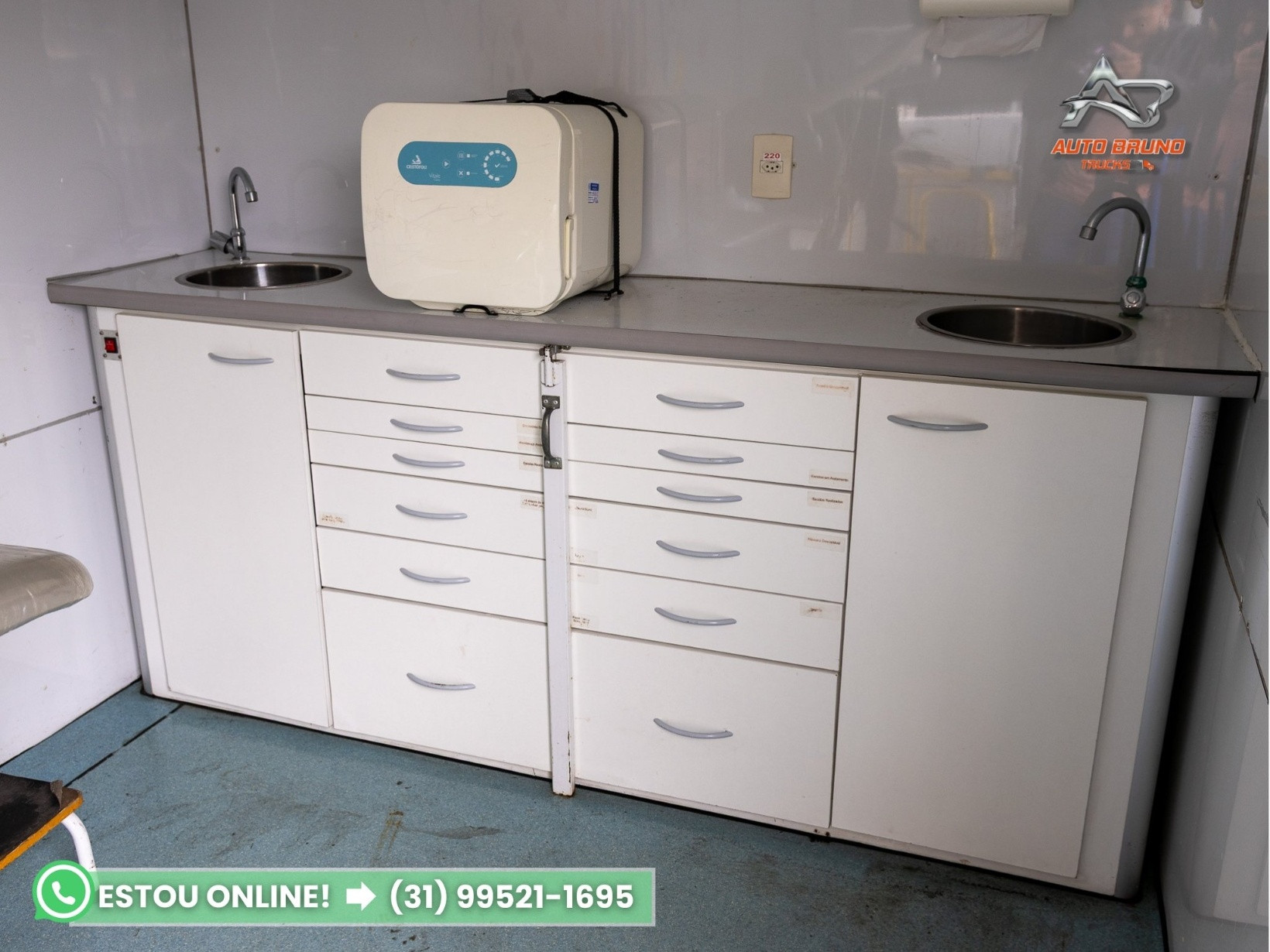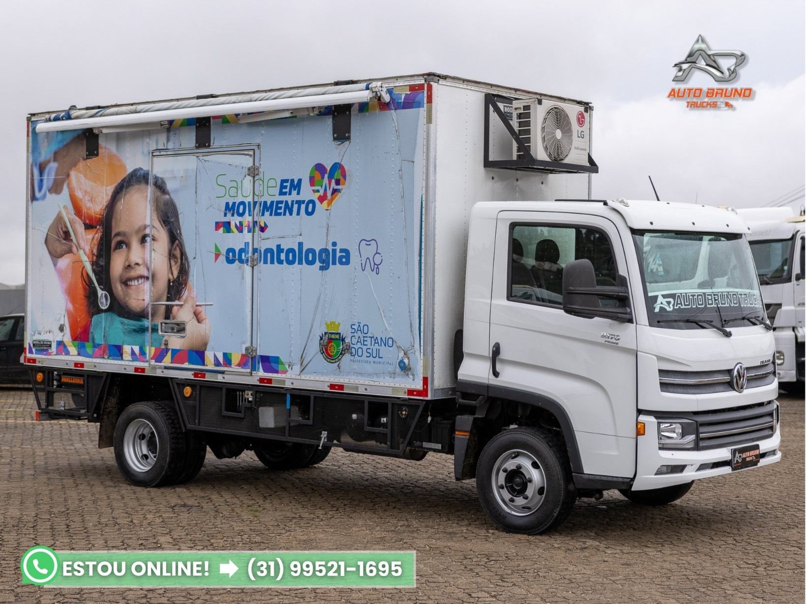 Vantagens: Caminhão Volkswagen 9.170 Prime com apenas 7.000 km originais e revisões periódicas em dia, estado de zero, com cabine extremamente conservada e equipado com baú odontológico completo. Destaca-se por ser uma plataforma móvel de atendimento médico, ideal para clínicas itinerantes, campanhas de saúde e serviços públicos. Seu conjunto inclui rampa hidráulica para acessibilidade, climatização, autoclave, móveis planejados e sistema elétrico funcional. . Chassi: Estrutura sem marcas de uso ou intervenções. . Implemento: Baú consultório médico-odontológico com 4,90m de comprimento, 2,20m de largura e 2,30m de altura, totalmente funcional, composto por: Cadeira odontológica com compressor; Autoclave instalada; Iluminação clínica e sistema de climatização; Móveis planejados e armários; Sapata hidráulica niveladora; Escada com corrimão; Rampa hidráulica Dhollandia 500kg Toldo retrátil frontal. Ar Condicionado Montagem sob medida e pronta para uso imediato. . Pneus: Medida 215/75, todos com 90% de borracha restante. . Cabine: Prime, com ar-condicionado, vidros e retrovisores elétricos. . Mecânica: Motor original com 7.000 km reais, impecável. . Câmbio: Manual, com engates macios e sem qualquer sinal de desgaste ou folga. Caixa em estado de nova.