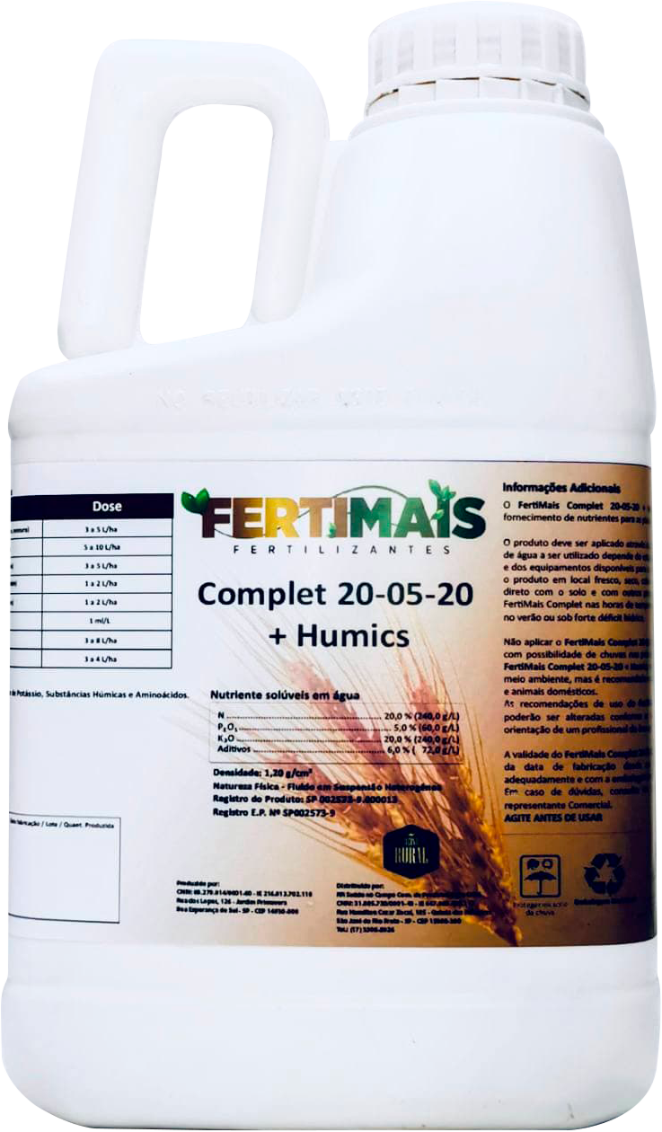 Conheça o 20.05.20 para Plantio e Cobertura, o adubo líquido NPK que eleva a produtividade das suas culturas a um novo patamar. Com uma formulação poderosa de Macro Nutrientes + Aminoácidos + Humics, ele age diretamente no metabolismo das plantas, garantindo um desenvolvimento completo e saudável.